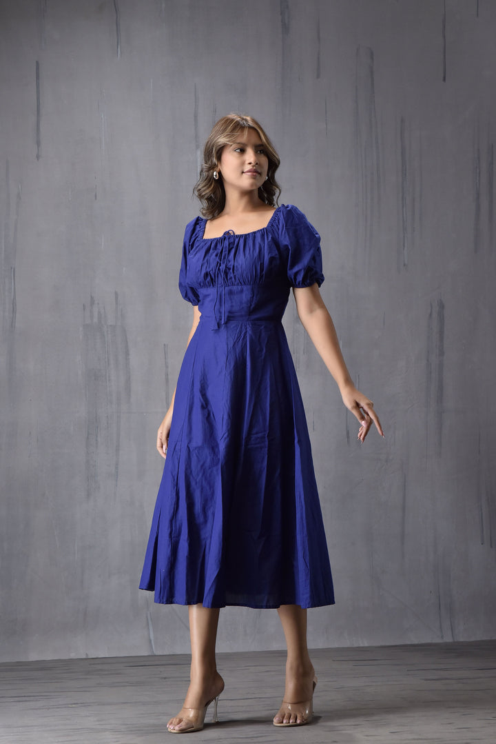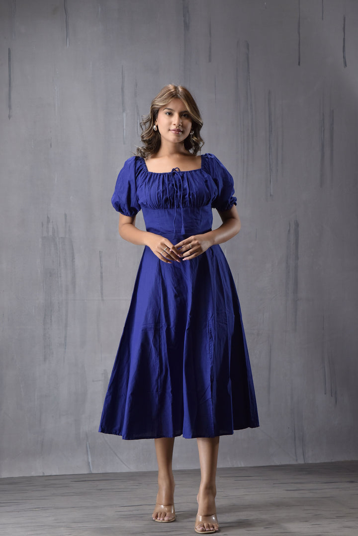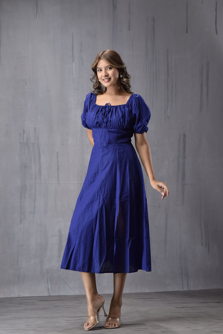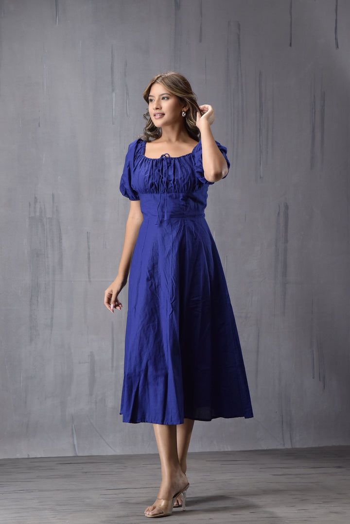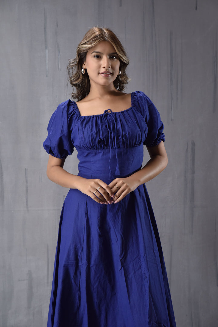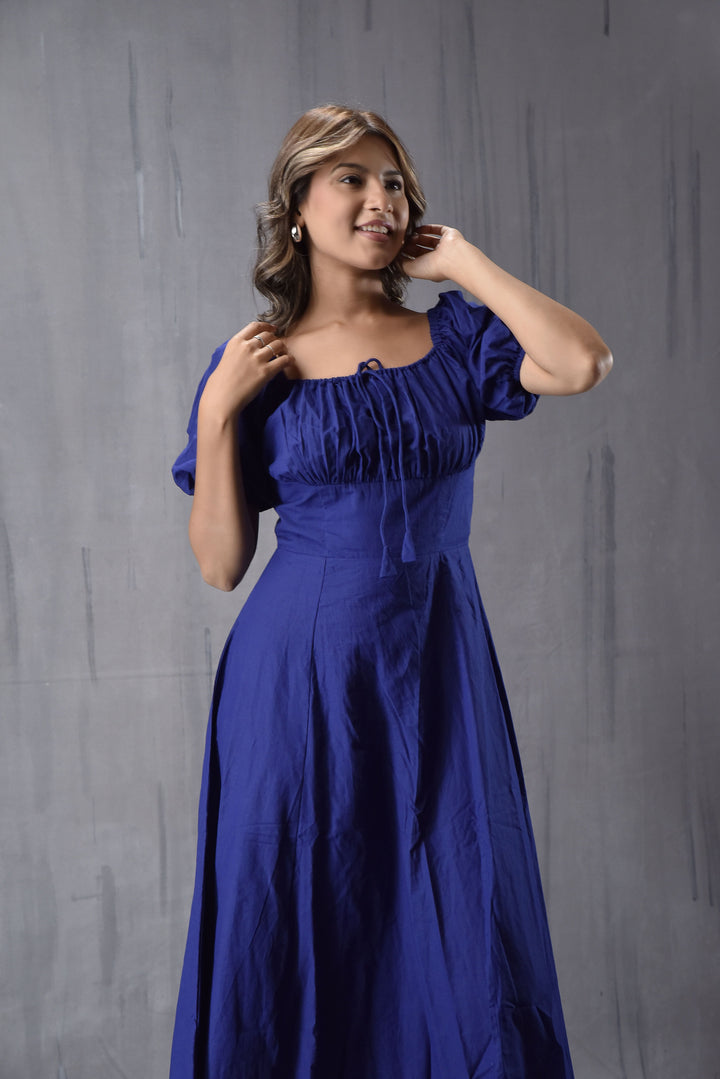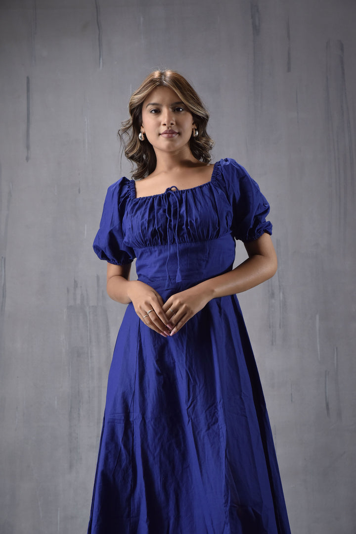 This elegant royal blue maxi dress stands out with sheer embroidered sleeves and a tiered hem that adds subtle movement. Perfect for formal occasions or evening events, its lightweight fabric offers both comfort and sophistication, making it a versatile wardrobe essential.