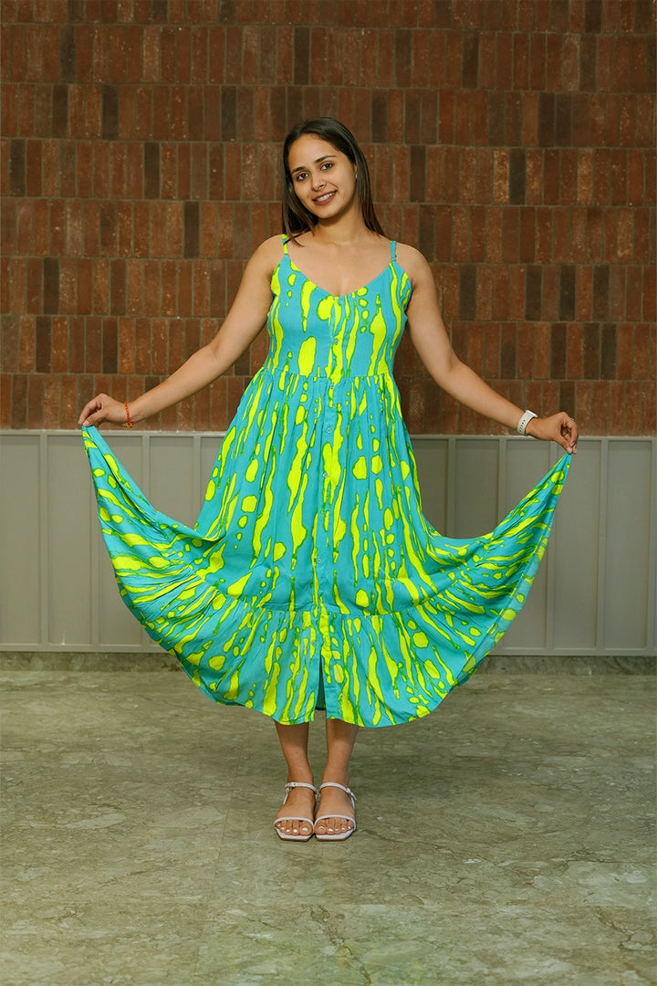 PRINTED DRESS MIXED(GREEN & YELLOW)
